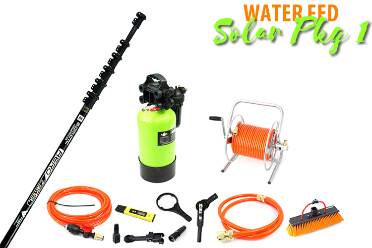 Start Up Residential & Solar Panel Cleaning Package 8L Lift & Carry DI System, 6M Aero Control Hybrid CAD pole, 12” brush, 50m hose and everything else you need!